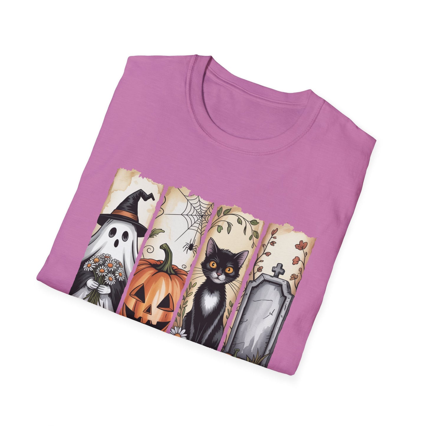 Embrace the spooky spirit with this delightful unisex softstyle t-shirt, ideal for all Halloween enthusiasts! Crafted from 100% ring-spun cotton, it offers a lightweight and soft feel perfect for everyday wear. The charming graphic celebrates the essence of Halloween, making it a fantastic addition to your fall wardrobe. Whether you're heading to a costume party or a casual get-together, this shirt radiates a fun and festive vibe. It makes an excellent gift for friends and family who love all things Halloween, and works perfectly for other celebrations like themed gatherings and autumnal festivities. Be the center of attention while staying comfortable and stylish!