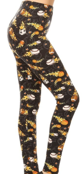 Sports Balls on Fire Print Leggings PS - LDX-R971